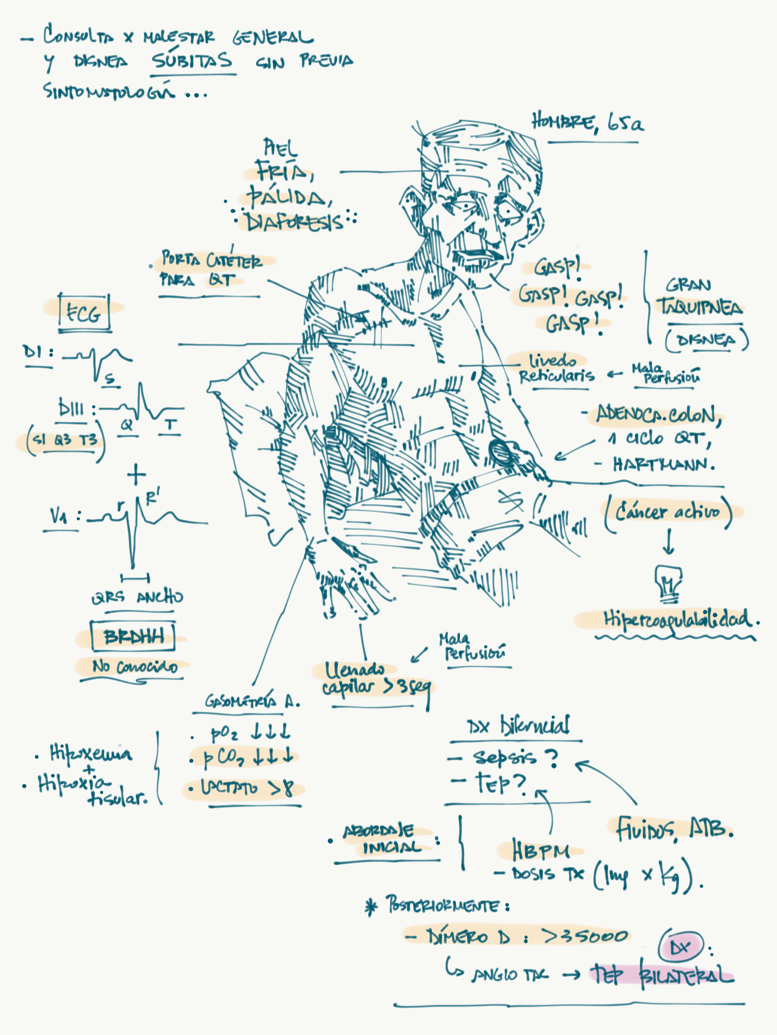 – Les comparto este caso verdadero al que hubo que acudir al box vital, o box crítico por un paciente con súbita taquipnea, deterioro importante y signos de mala perfusión tisular…