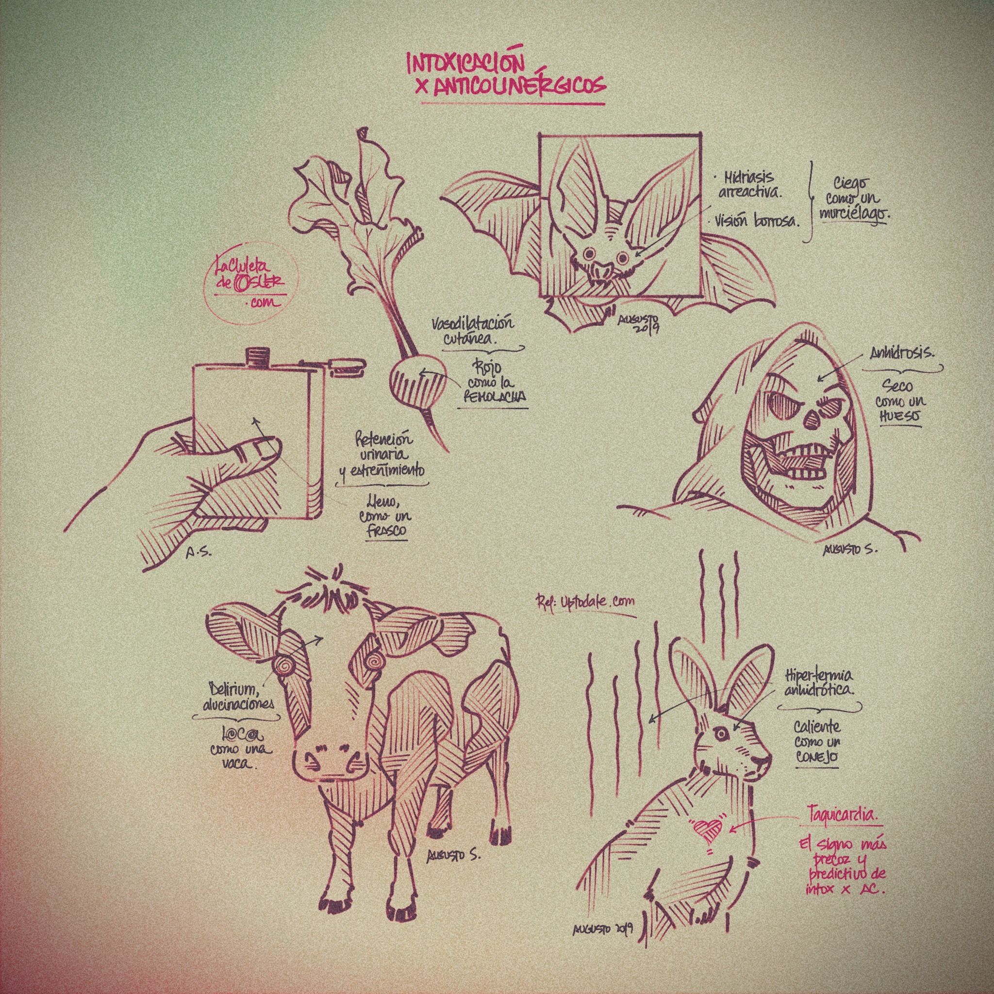 A continuación revisamos el famoso juego de palabras para recordar los síntomas de la intoxiación por anticolinérgicos.