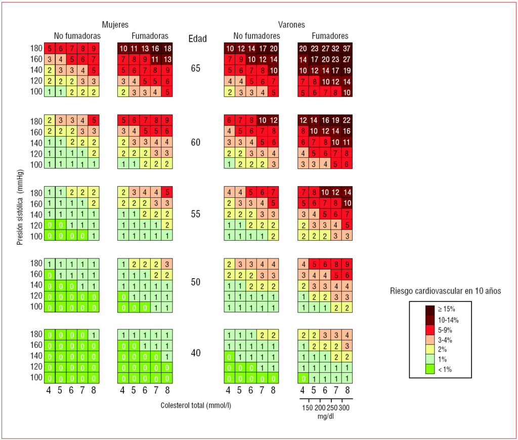 Si un paciente no ha tenido eventos cardiovasculares previos ni diabetes, pero tiene una edad avanzada, fuma, es hipertenso, tiene sobrepeso y es sedentario, entonceslas estrategias para disminuir su riesgo corresponden a una PREVENCIÓN PRIMARIA. En ellos es útil utilizar la tabla SCORE para determinar, según sus factores, incluidos el LDLc, el grado de riesgo del paciente. A patir de un riesgo MODERADO ya podríamos emplear estatinias, pero el beneficio absoluto no parece ser consistente, ni hay evidencia de un nivel objetivos LDLc específico al cual debemos llegar.