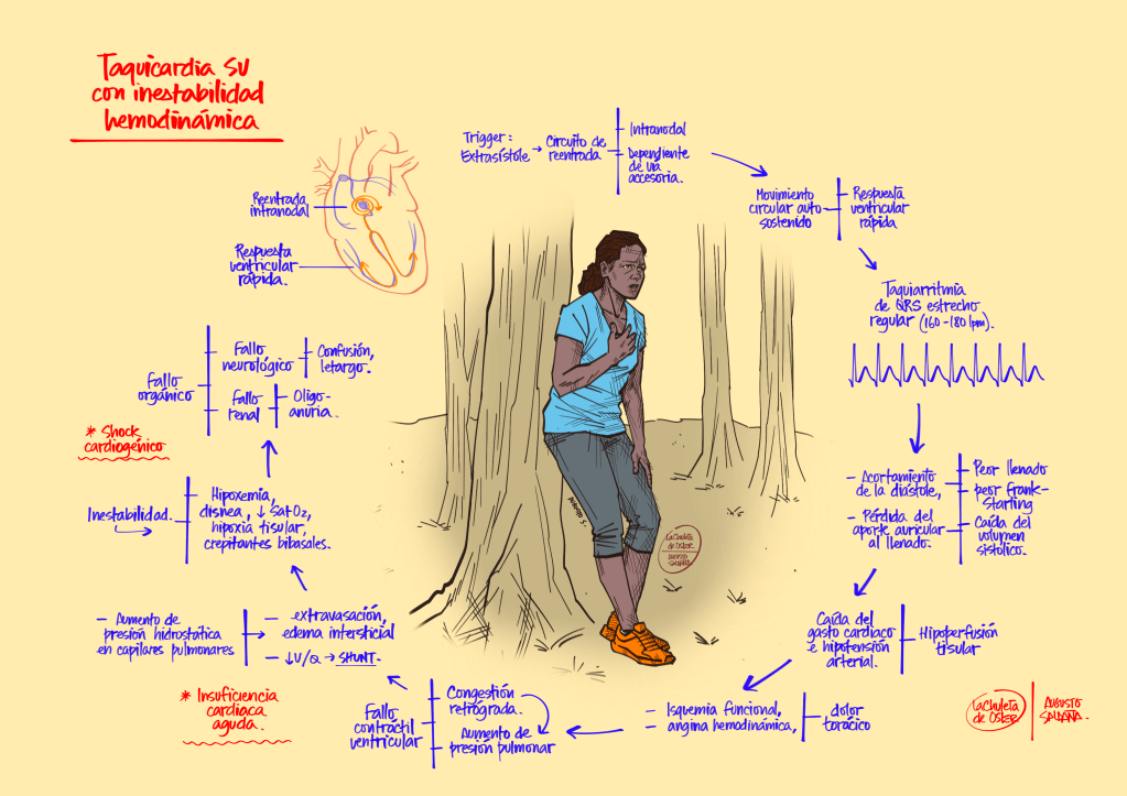 Repaso a la fisiopatogenia del fallo cardiaco causado por taquicardia (supraventricular), y su correlación con la semiología y clínica.